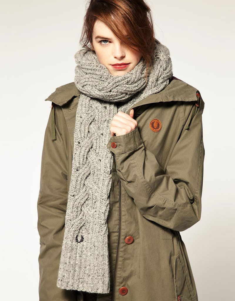 Modern fashion trends offer knitted scarf models. The range of options presented is wide: it can be as small, sometimes miniature versions, and scarves plaids that can quickly transform into a poncho or short coat. A variety of rulers differ in length, texture, style and density of the materials used.