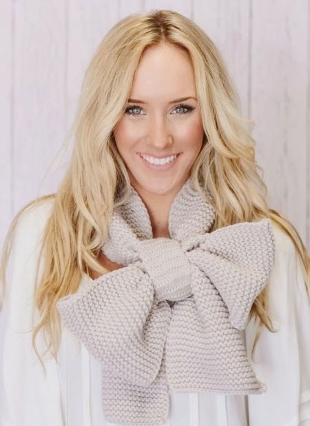 No less interesting design in the form of a bow. It fits bright and bold natures. To create it, the scarf is thrown over the head so that one end is much shorter than the other. The long part is formed into a ring and compressed in the center.The short free end wraps the ring from bottom to top at the clip. Then the design is tightened, while lifting the bow to the desired level. The scarf-bow is perfectly combined as an accessory with a raincoat or a coat of classic style.