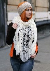 In addition to warm winter options, the designers introduced shawls made of cotton not exceeding the size of 70 cm on the catwalks and summer ones. This accessory is perfectly combined with summer dresses or T-shirts. Summer models are most often decorated with lace or are connected with a very thin viscous "web".