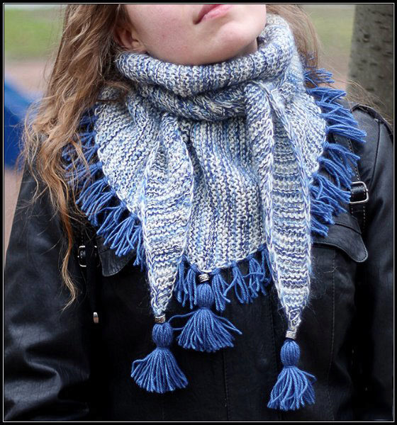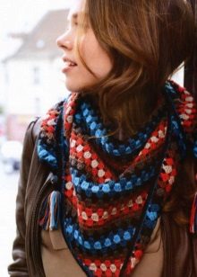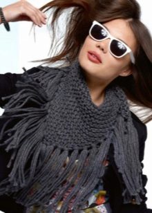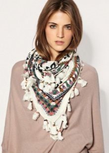 A medium-sized baktus will be combined with a leather jacket with a fringe of several tones brighter than the tone of the jacket and complemented with tassels. To tie such a scarf-scarf can all the same classical way, tying the ends together around the neck.