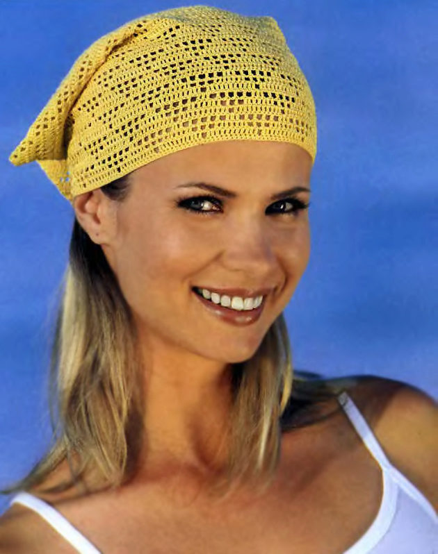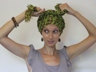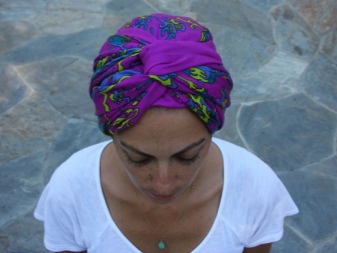 Another version of the turban is done like this. We throw baktus on the head, like a towel after a shower. On the forehead we cross the ends, twist our heads and fasten them below under the handkerchief.