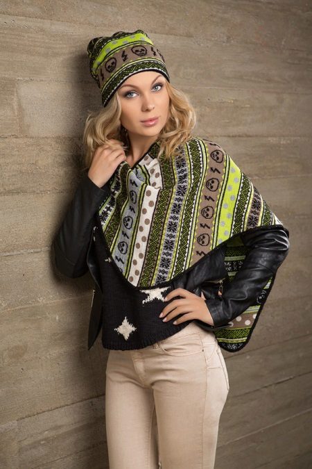 A variant of bright bactus in combination with a light white turtleneck will be appropriate on a cool summer day. For rainy summer weather, designers advise replacing baktus with a mid-sized kerchief and adding a cardigan.