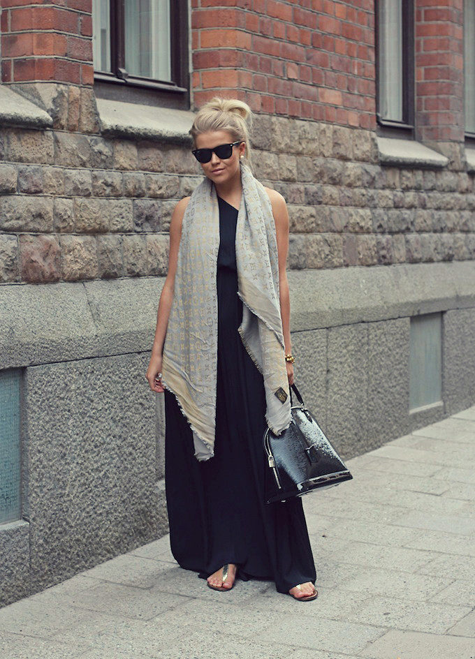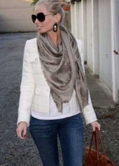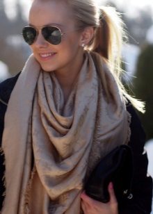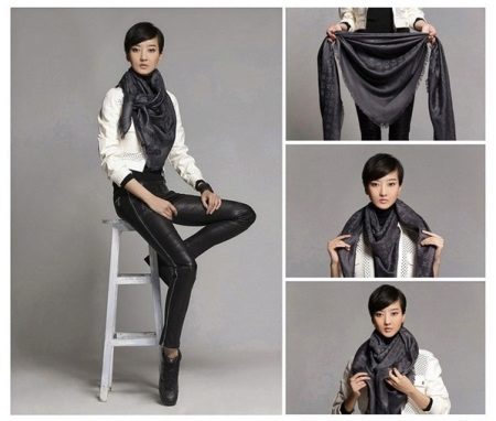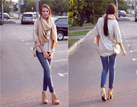 The size of the accessory allows you to wear it as a separate item. For example, a light summer scarf can be tied up like a top gang, which will give originality to the image. Stylists are advised to wear warm stoles like a shawl or wrap their shoulders as fantasy allows.