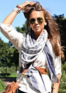 Despite the wide color palette of handkerchiefs, the undisputed leaders are shades of purple and lilacThey emphasize the femininity of the image. Cappuccino - adds to the image chic and aristocratic. White cloud - emphasizes the tenderness of the owners of branded scarves. California or pink, Contrasting, for example, with jeans and adding brightness to the image. These colors are most popular among fashionistas.