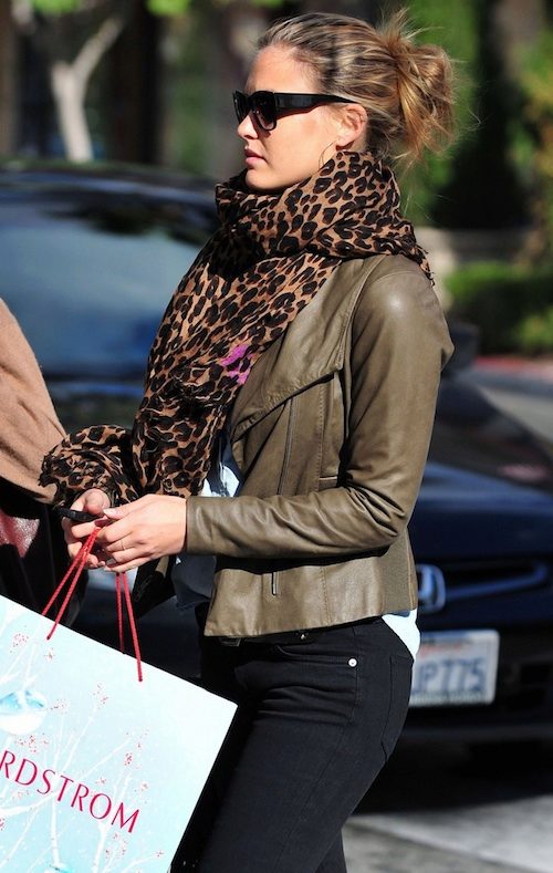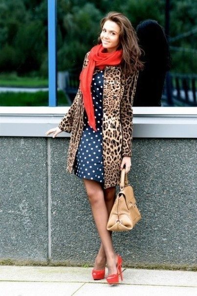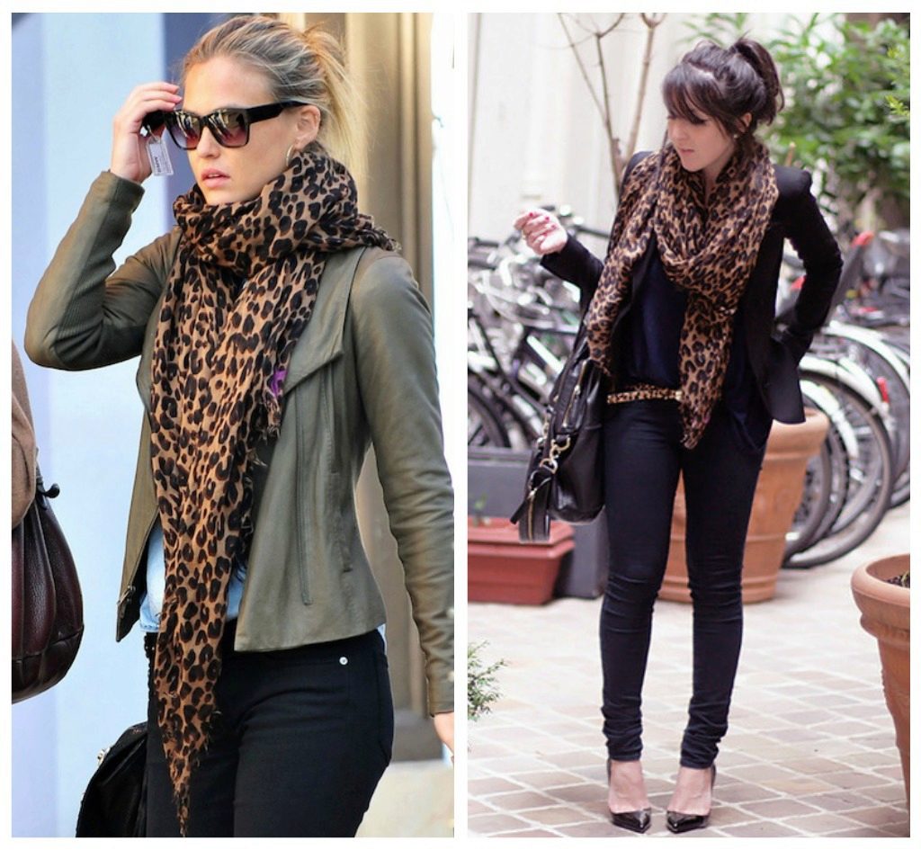 If you prefer a sporty and comfortable style for a casual look, feel free to add a leopard scarf to sneakers and jeans.