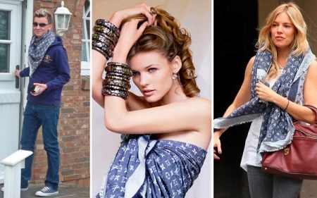 The popularity of its products grew steadily, and coincided with the development of rail and sea passenger transport. It should be noted that even now baggage bags and suitcases are associated by many with this brand. Today, the Louis Vuitton brand represents shoes, clothes and, of course, accessories. The most famous of them is the Louis Vuitton stoles. All over the world they are considered the most stylish and sought-after accessory, not only for women.