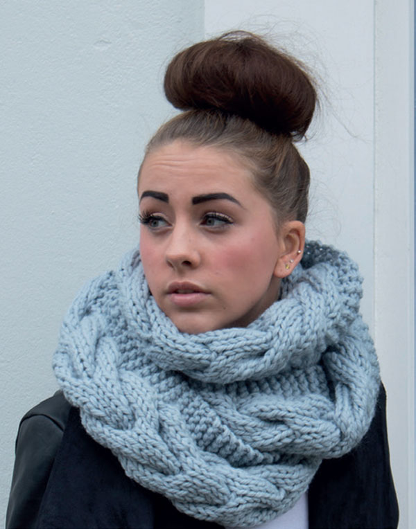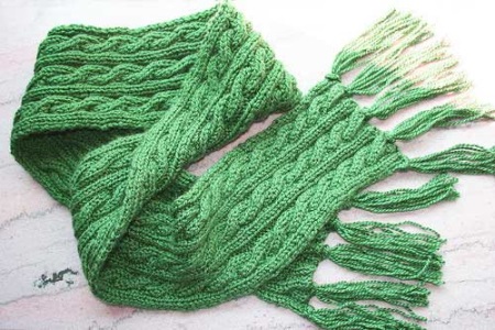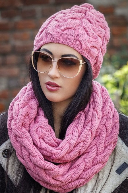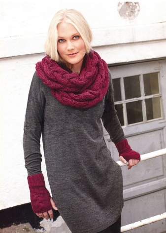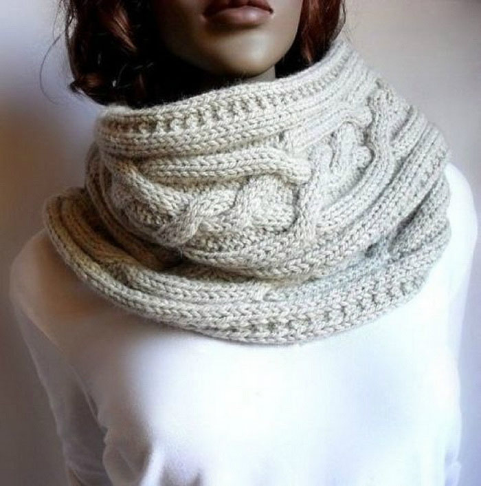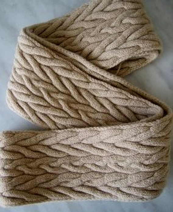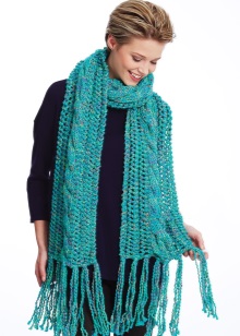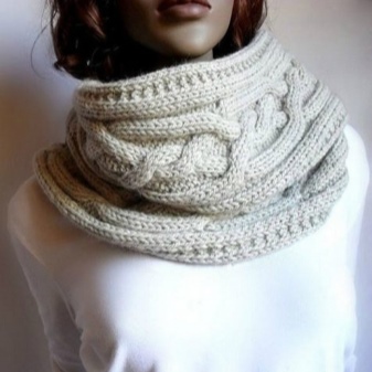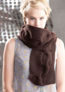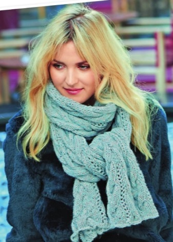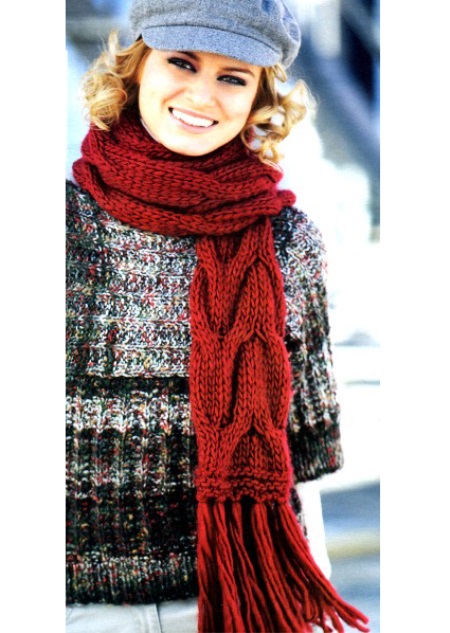 - volume double-sided scarf. The pattern with braids on such a scarf does not differ on both sides, so that it can be worn, without hiding inside out, and wrapped, twisting;