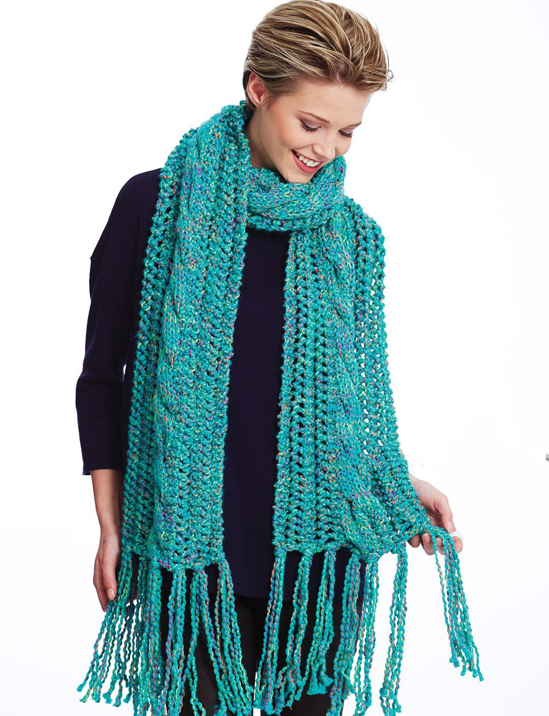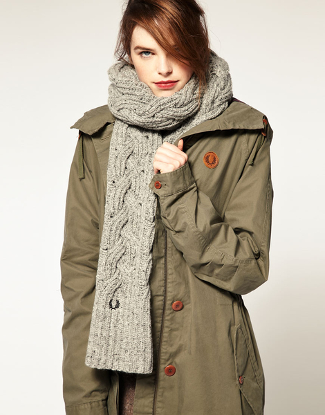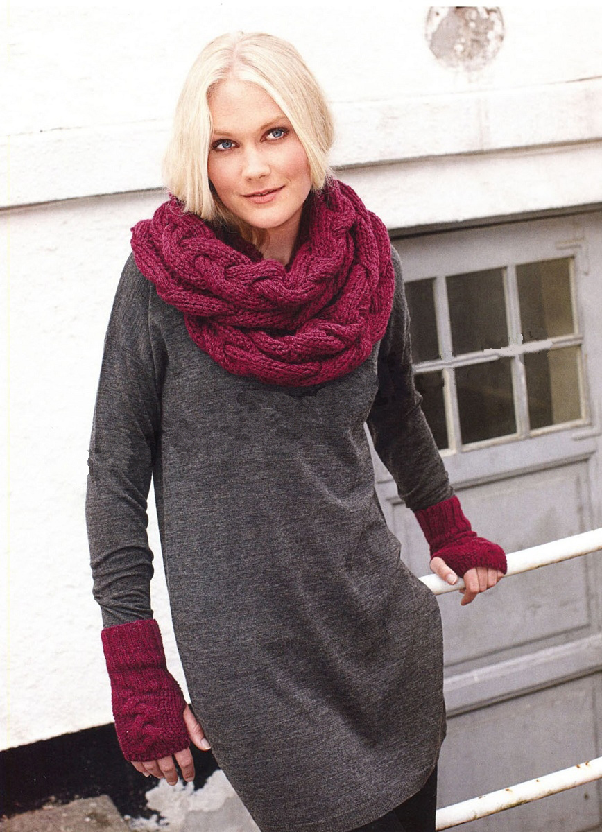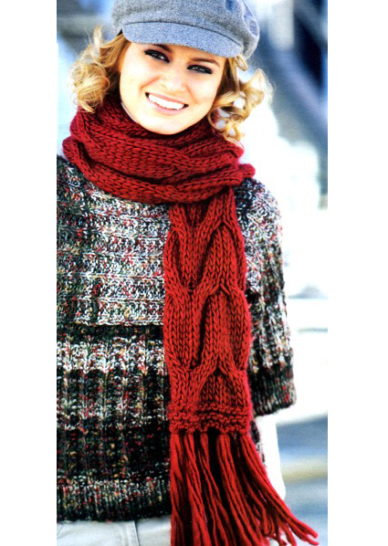 Knitted scarves with braids or Aran are good in styles with folk motifs.