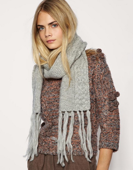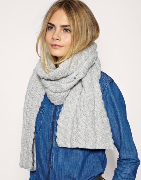 Knitted scarves in fashion is not the first season. The current trend today is volumetric knit scarves or embossed patterns. Such scarves include many fashion designers in their collections, and fashionistas and fashionistas wear them with pleasure. Donna Karan (DKNY), Burberry Prorsum and Rodarte presented interesting voluminous knitted scarves and trendy images with them.