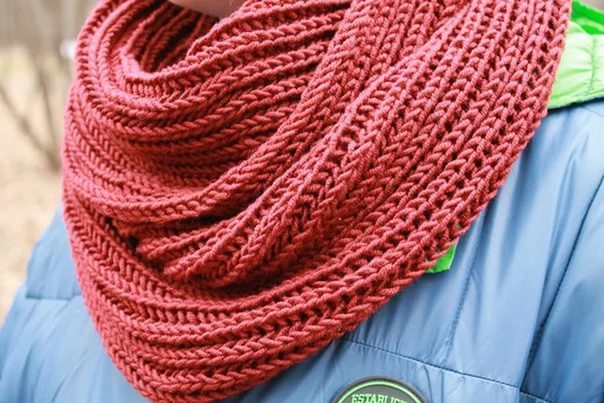 English gum is the easiest of these methods of knitting bulky scarves, it can master even a beginner knitter. Scarves tied with English elastic band are always relevant.