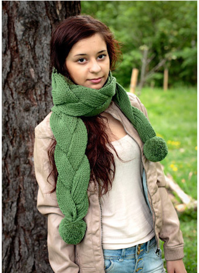 - a scarf-hood with braids is not only an original, but also a very practical accessory: it covers not only the neck, but also the head;
