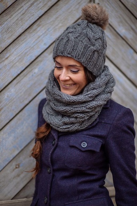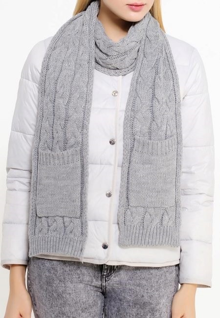 You can combine this accessory with things of a strict, concise, simple cut. It can be a coat or a short coat. Bulky scarves with large braids look very comfortable and home-like, somewhat casually, due to which the whole image will not be so strict. Scarves can be selected to match outerwear or, on the contrary, in contrasting colors. The number of items with which you can wear voluminous knitted scarves with braids, and the styles in which they are relevant is a large number. Such scarves can be worn both on outerwear and under it.