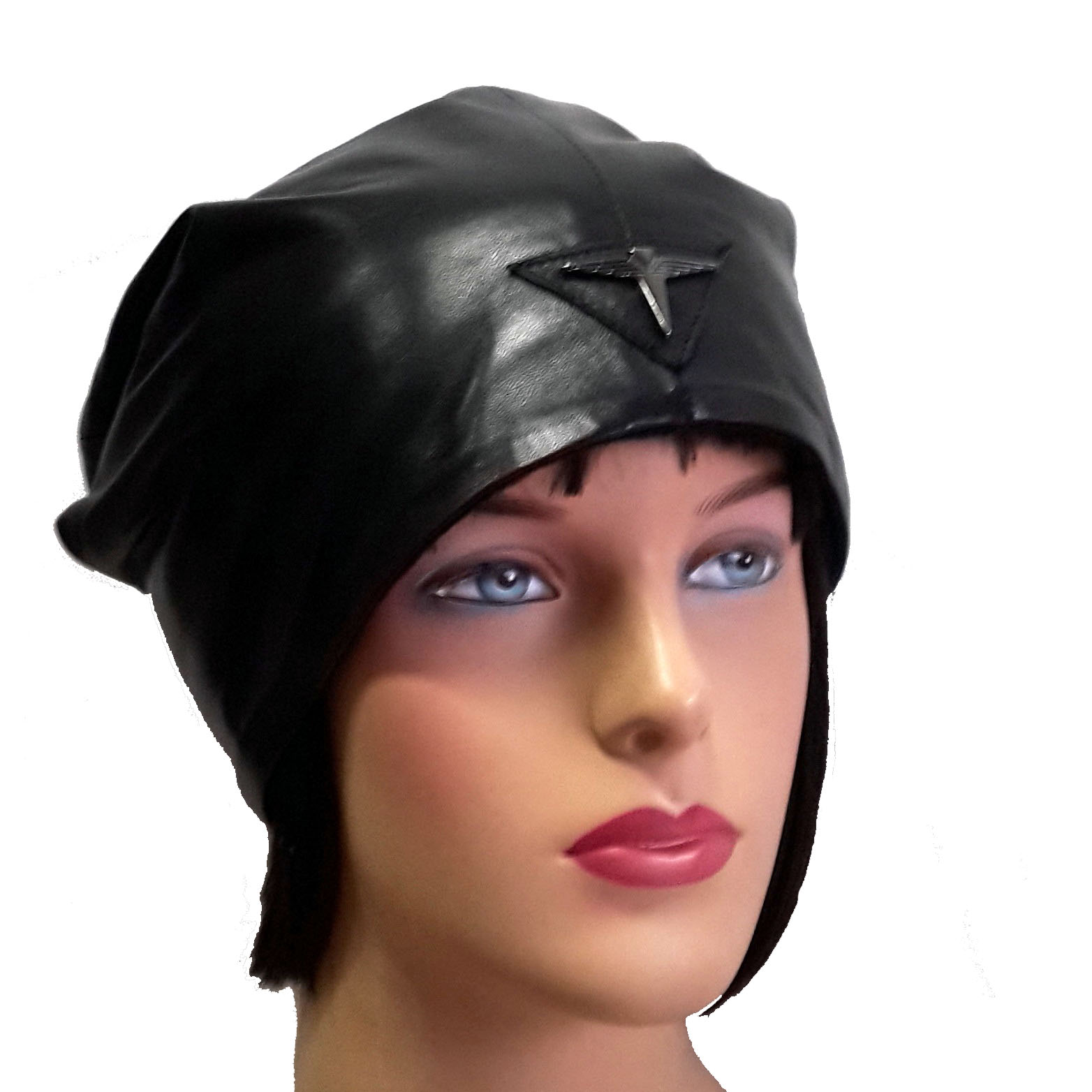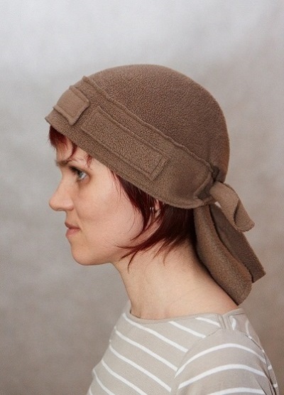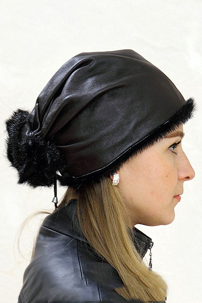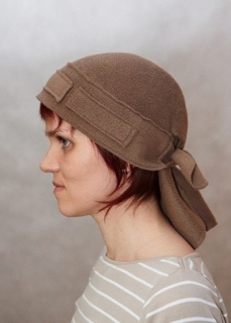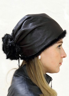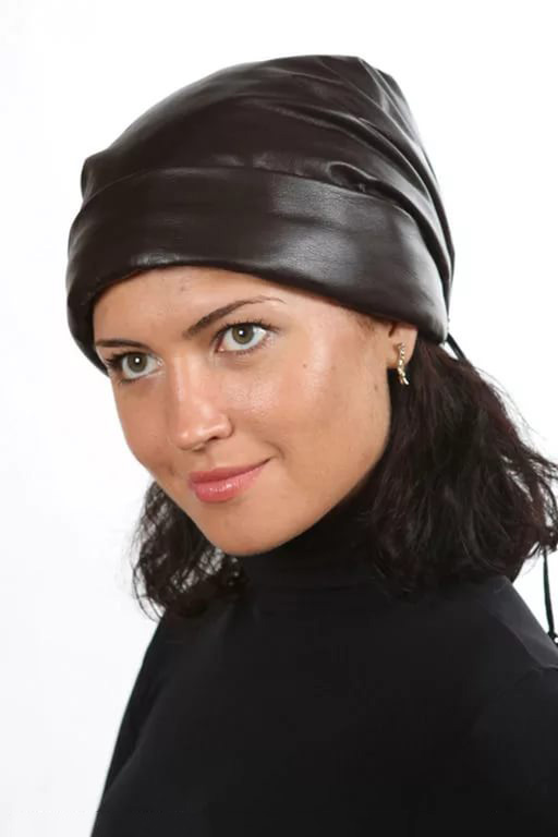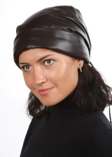 A cap made of natural or artificial leather is an autumn-spring version of a headdress. As a rule, the leather scarf ends are tied at the back of the head, thus creating the look of a "cool" leather jacket.