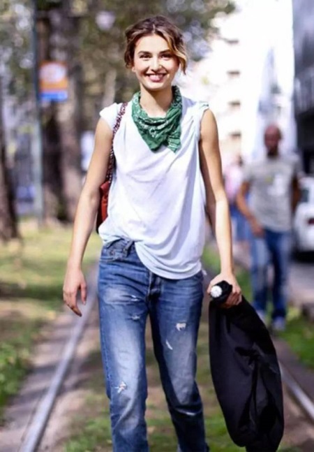 The options of wearing scarves, materials, colors are great! But this season will delight us with another type of scarf - scarf-bandana.