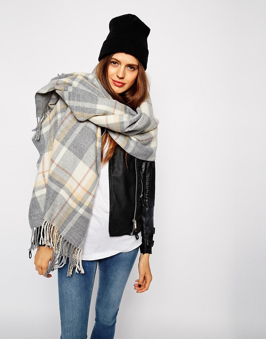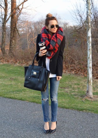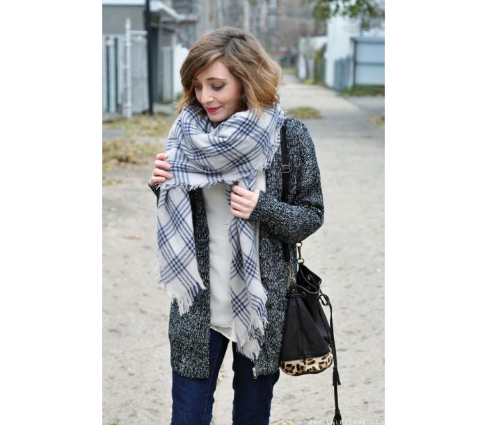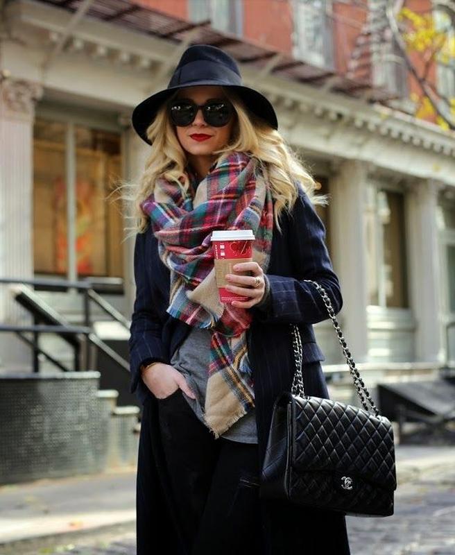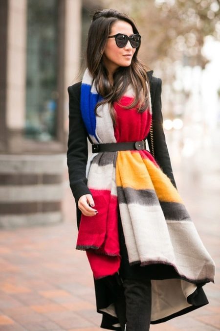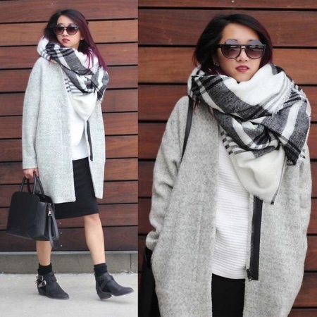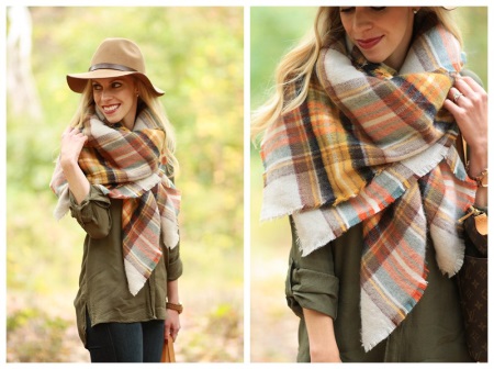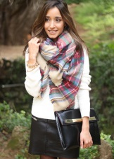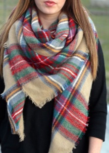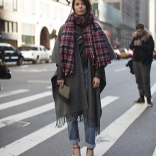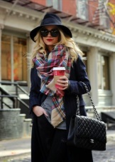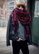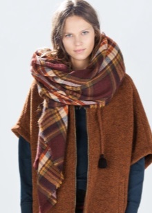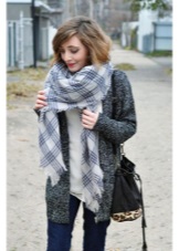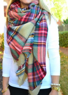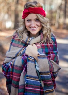 More recently, he was a classic element of clothing, strictly fulfilling its functional purpose. Today, the collection line of accessories is available in different shapes and volumes. One of the most unusual options can be called a plaid scarf. This is a voluminous scarf, which in its dimensions resembles a blanket. It can be considered a mix of several items of clothing: a scarf, rug, shawl and cap.