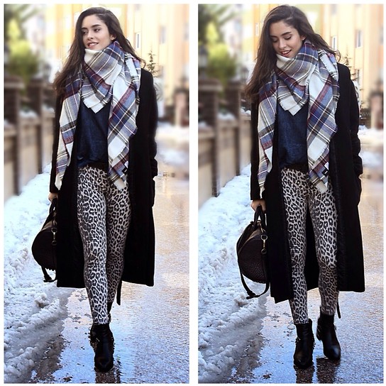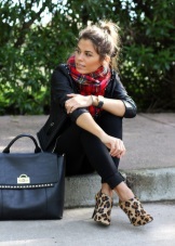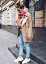 An excellent tandem will be a combination with a coat of straight cut. Business style can be supplemented with a rug folded along the length and slung over the neck with free-falling ends.This option will look great with a short coat, jumper and skinny leggings.