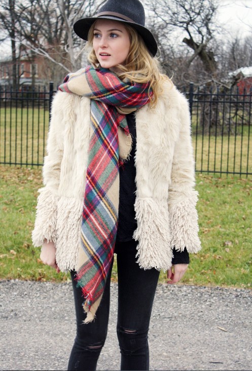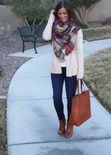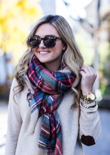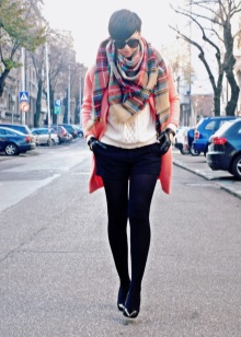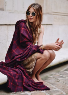 Choosing an accessory, you should pay attention to its length. To do this, throw a blanket over his shoulders. The length of the scarf plaid should not be below the level of mid-thigh.