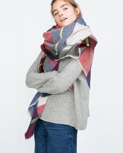 The size of the “plaid” Zara is much larger than the usual scarf, so its design in the creation of a bow is different from the standard one. Proper shaping will help not only maintain the proportions of the figure, but also visually make them more pleasant. While inept winding can “absorb” the wearer and give the appearance of a wrapped blanket around the neck.