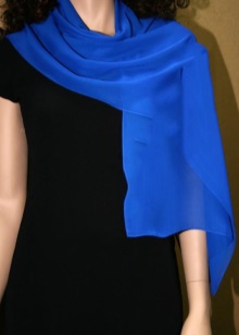 Transparent dark blue products are necessary for the formation of evening, elegant bow, suitable for special occasions. A visit to the theater, restaurant or official corporate party will be successful if you wear a blue chiffon scarf.
