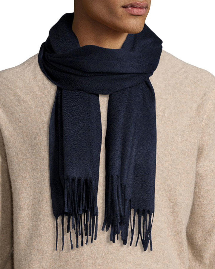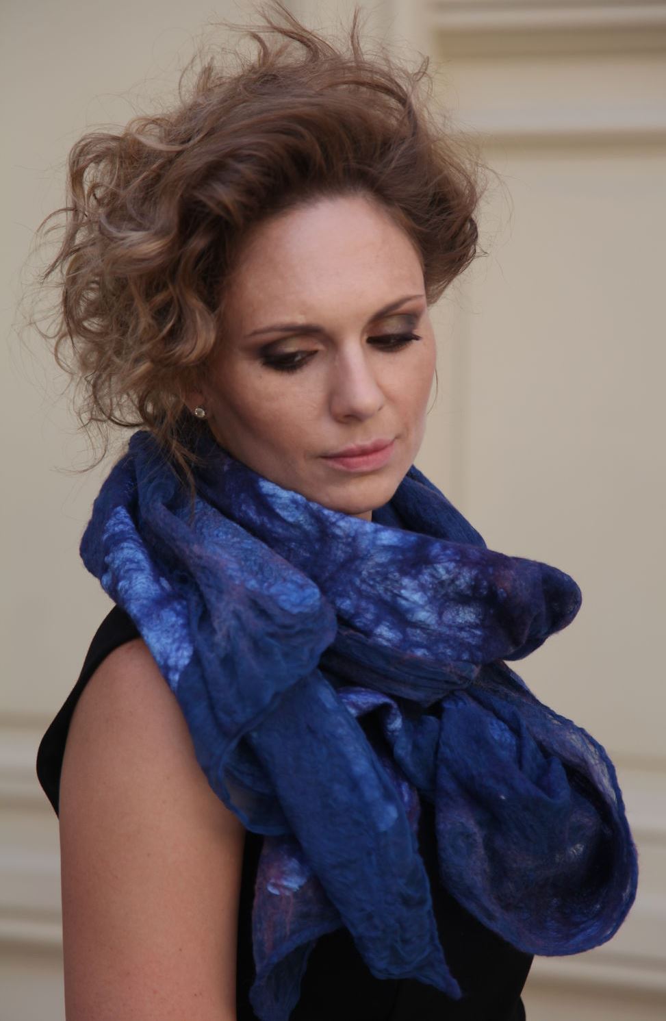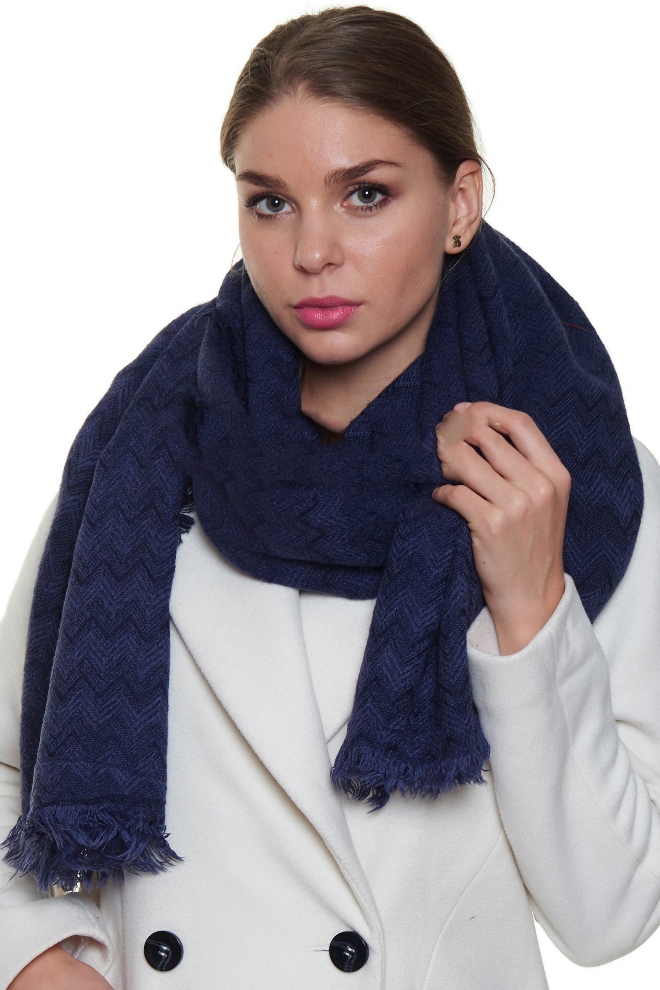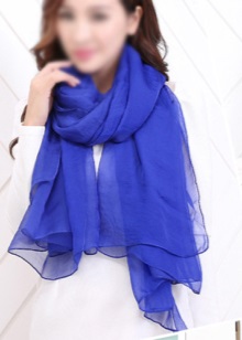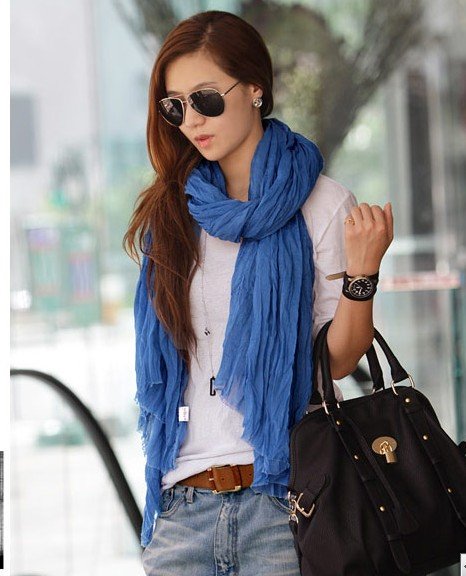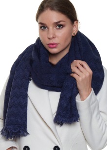 The dark blue version will appeal to those who dislike black, but prefers a dark scale. Dark blue scarves give the image a strict elegance and nobility.