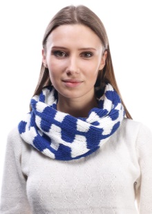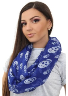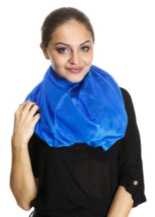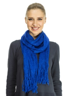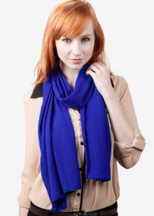 Bright blue scarves focus on the outstanding part of the female figure - on the chest. So if your goal is to conquer a man’s heart, boldly tie this model around your neck.