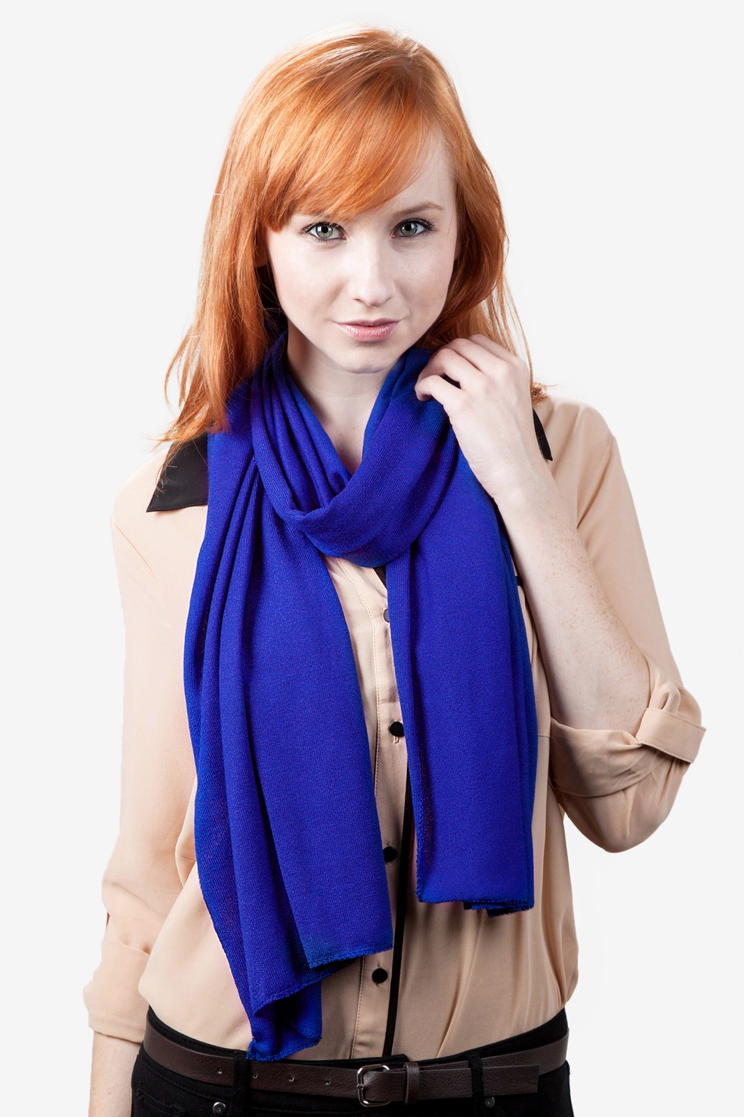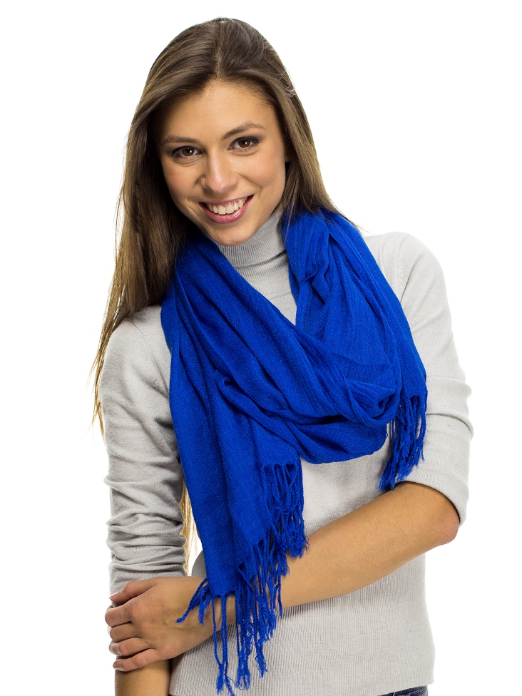 Female blue scarves leave positive reviews. The acquisition delights lovely ladies. Thanks to scarves, they manage to experiment, to create charming images for walks and important meetings. There are many options with which to wear blue models.