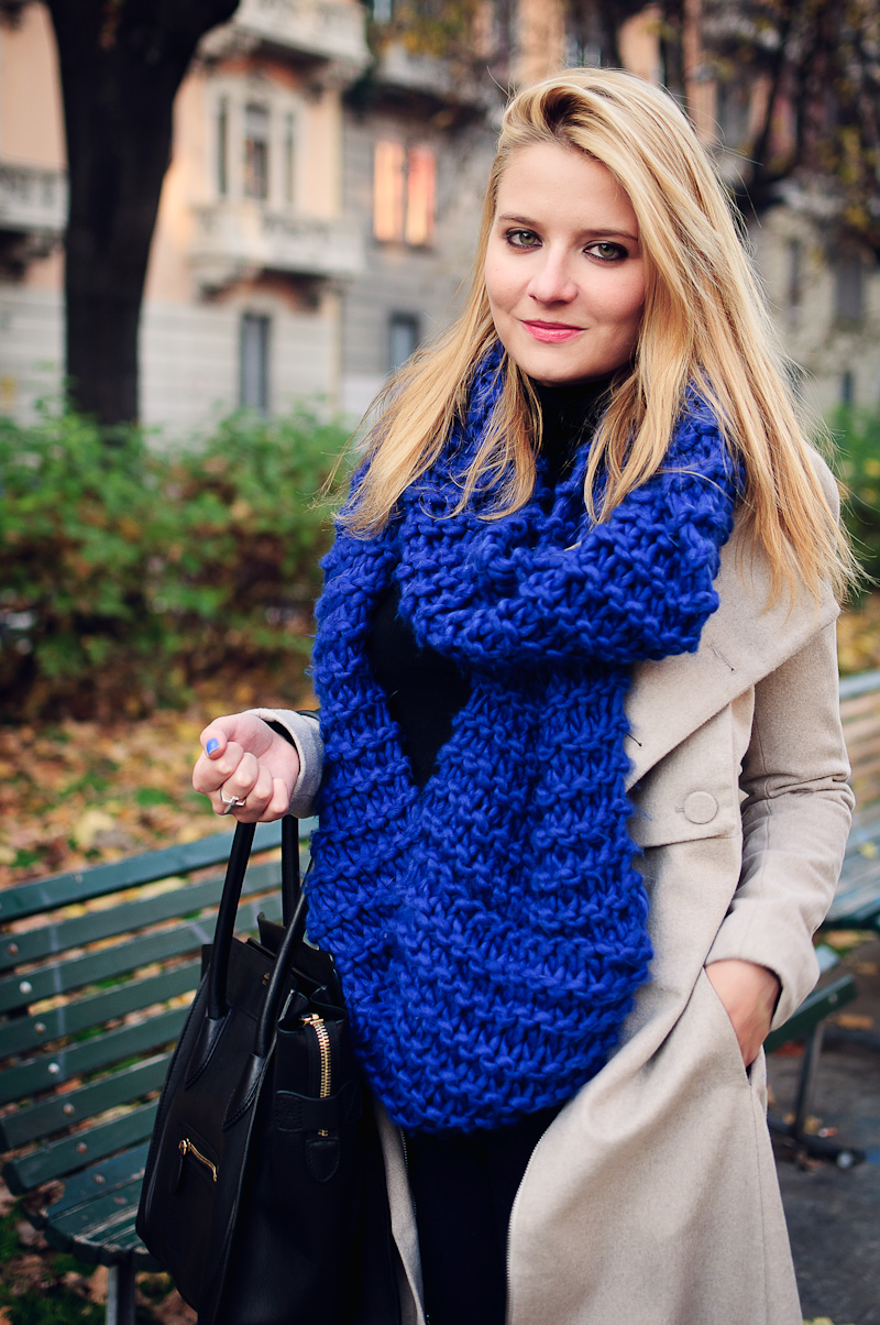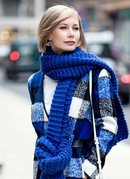 With the onset of cold weather, it becomes more attractive to look attractive than in the warm season, because the figure has to be hidden under fur coats and down jackets. Fortunately, blue cashmere and fleece scarves come to the rescue.