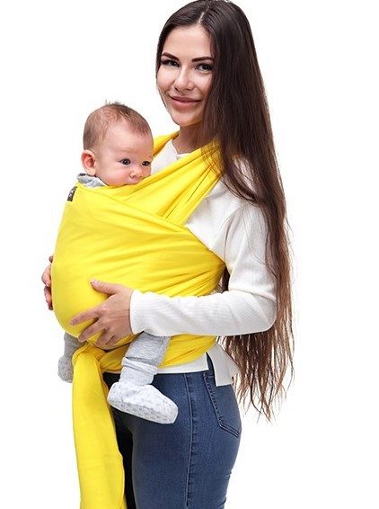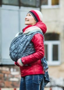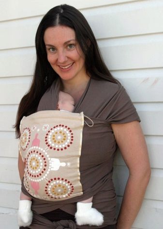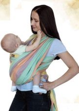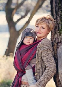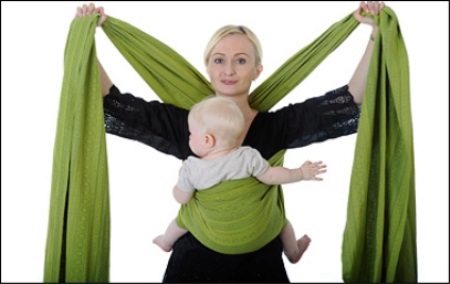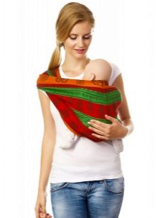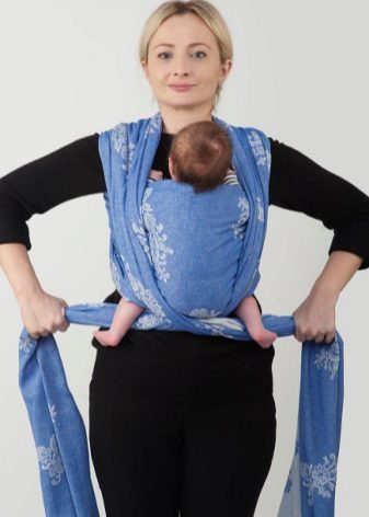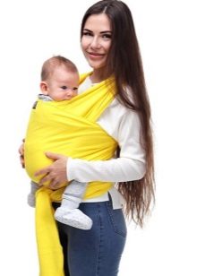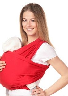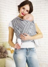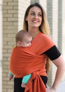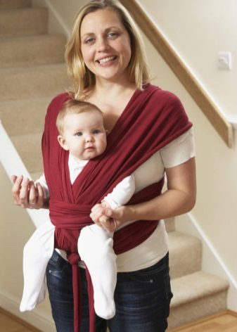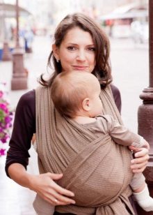 It is convenient to start baby wear with a knitted scarf. It is easy to adjust, pull. It is very pleasant to the touch and soft. However, as the child grows and its weight increases, the knitwear, stretching, will begin to sag. The fragile spine of the baby will be forced to maintain the desired shape, which is fraught with curvature.