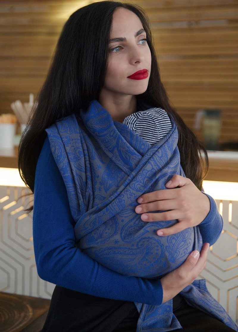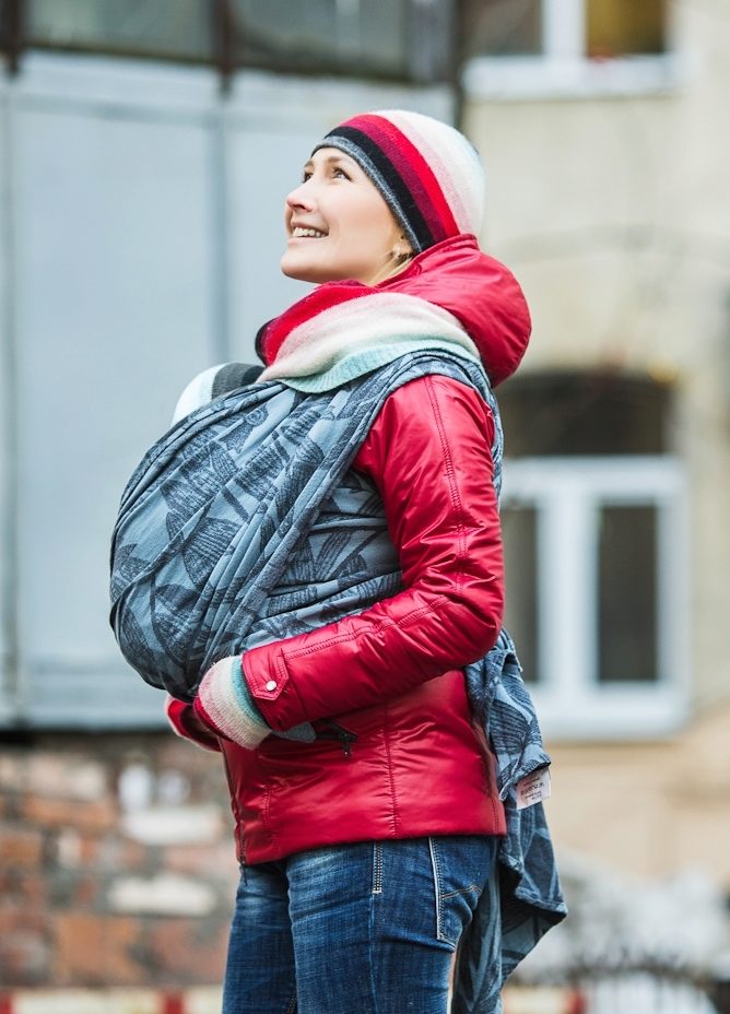 Thanks to the double diagonal (twill) weaving, the scarf stretches well only diagonally. Scarves with such weaving are the most versatile option., because they do not stretch, unlike knitwear, and perfectly fix the child in the required position.