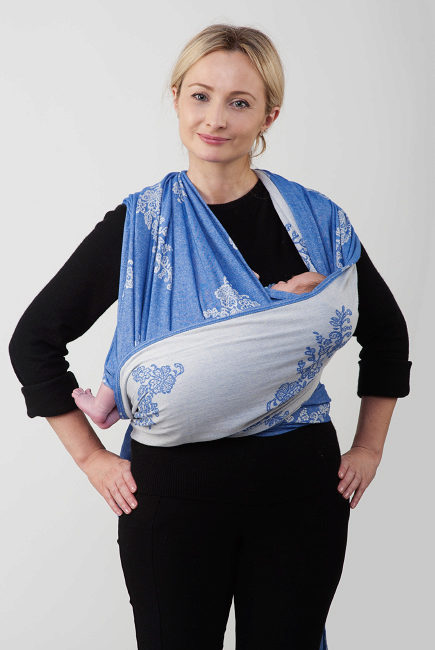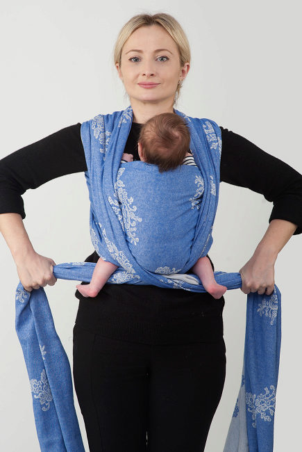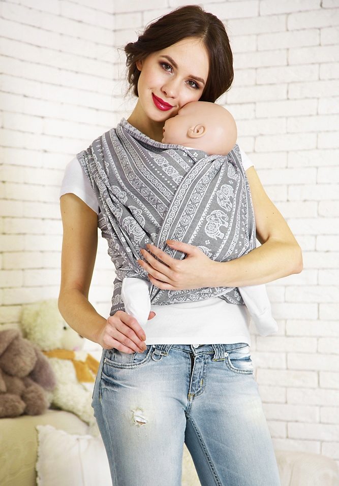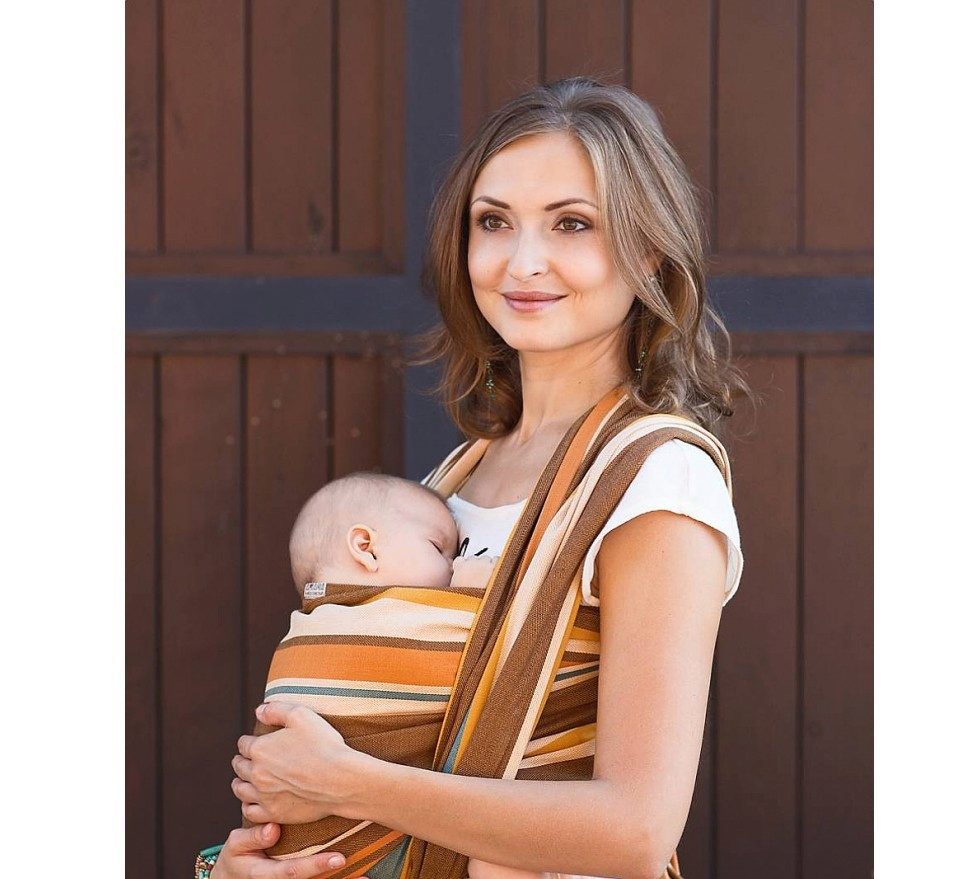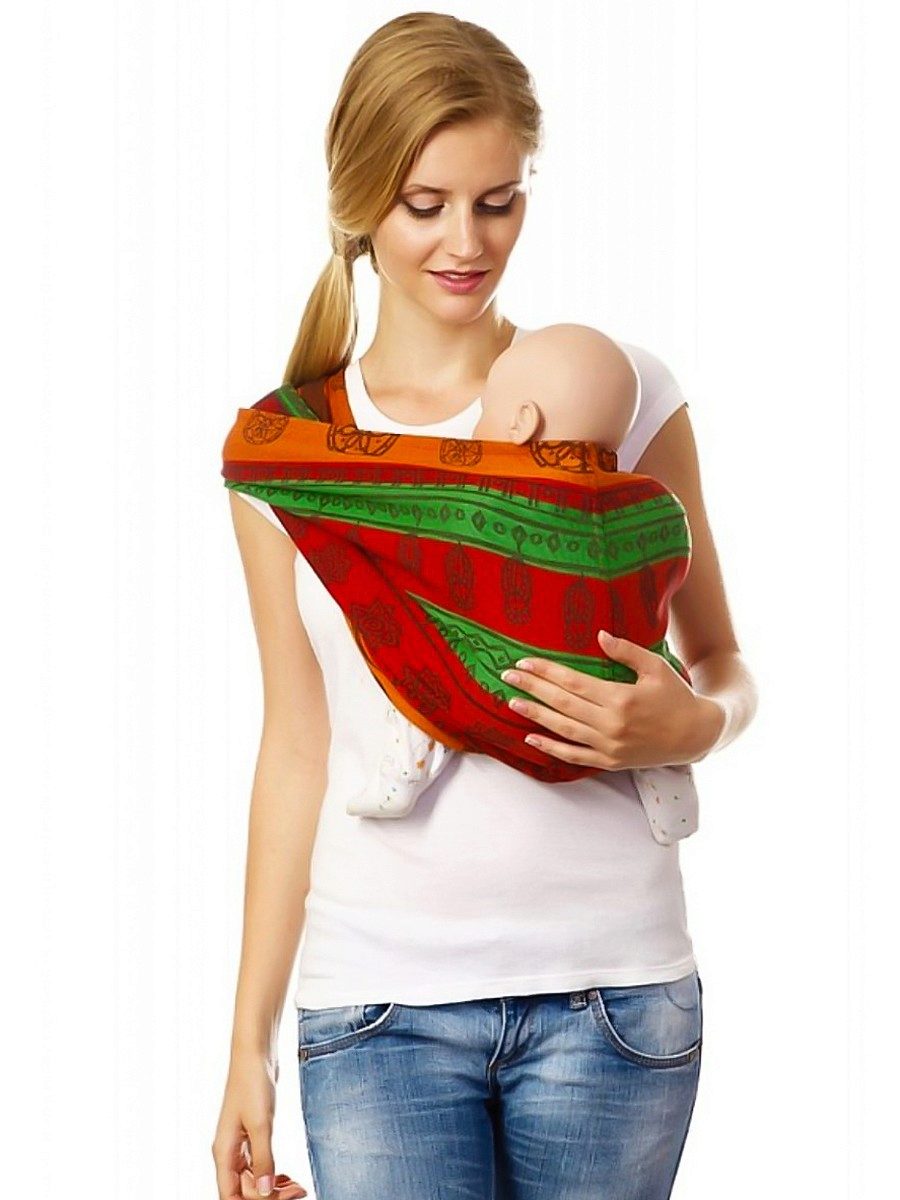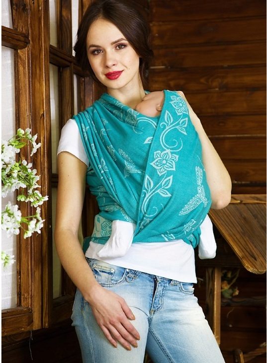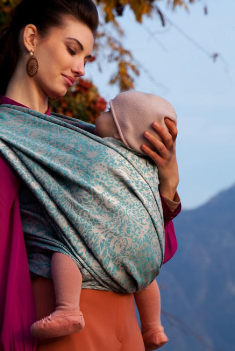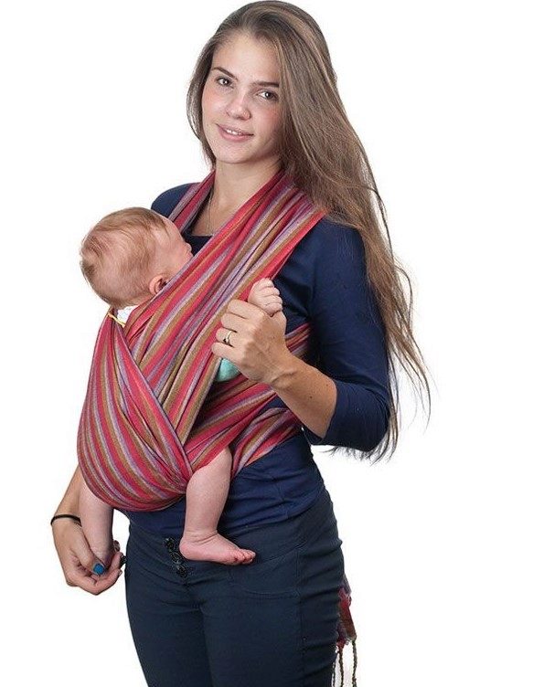 Sling-scarf is a fabric, about 5 m long, about 70 cm wide, designed for carrying children. The scarf does not have to stretch at length, but it is imperative that it stretches diagonally and in width, which is achieved by a special interweaving of strong threads.