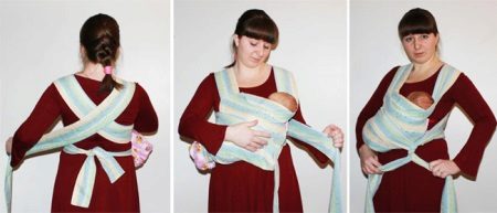 One of the most versatile is the sling-scarf. It can be used when winding for newborns "Cradle", and in more complex windings for grown children.