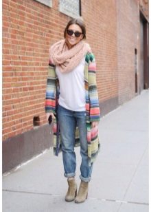 - season - it is necessary to consider for what time of the year the accessory is bought, because the clamps are divided into light, warm and demi-season; an improperly selected scarf can lead to excessive sweating or, conversely, cause the host to freeze. Demi-season models are made from more dense and warm materials: yarn, cashmere, dense knitwear. They are suitable for wearing with parks, down jackets, coats;