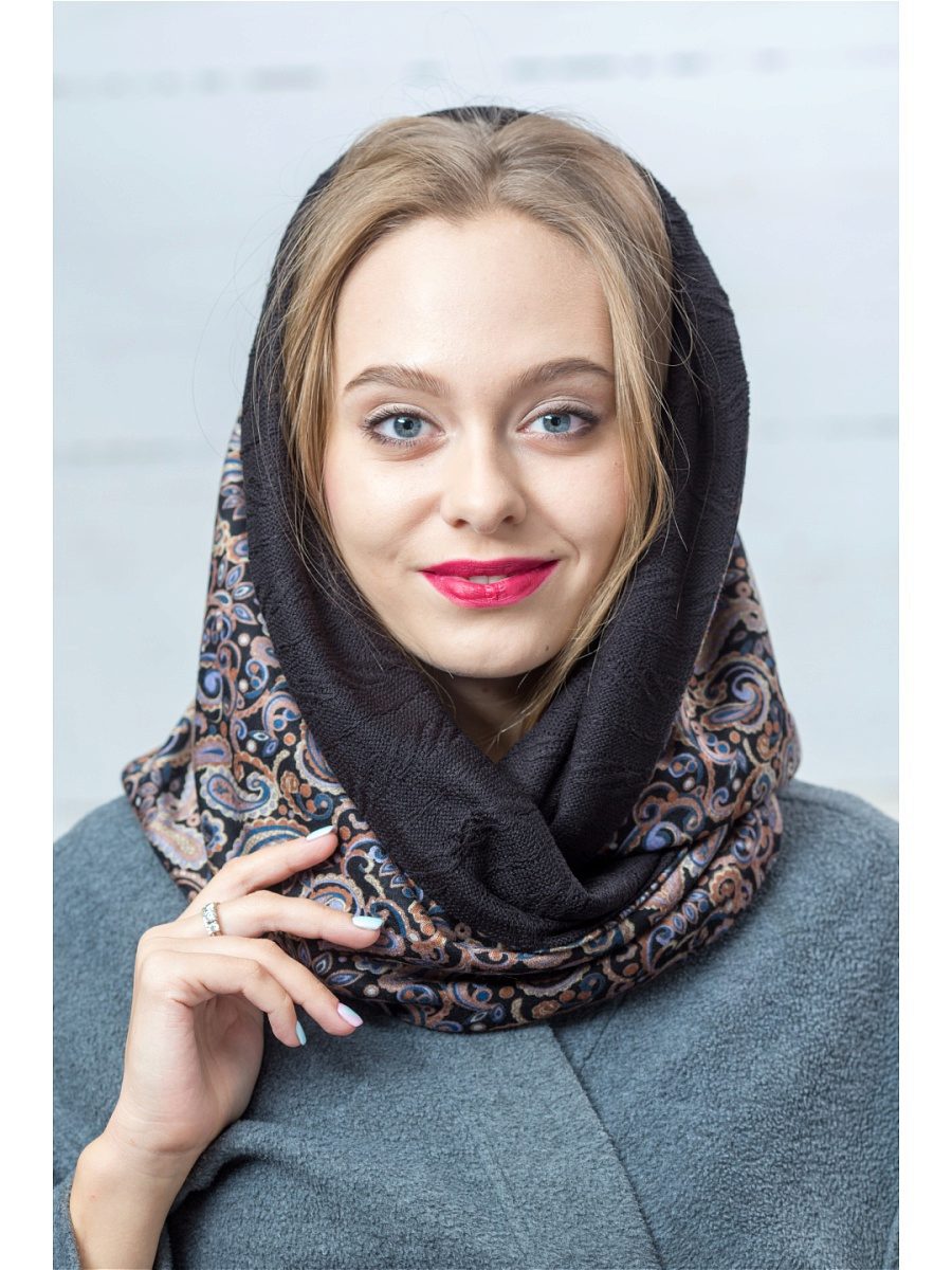 - practicality - unlike the usual circle scarf, you do not need to constantly correct and make sure that it does not go loose: the product will fit snugly to the neck by adding artificial fibers to the fabric, or hang in beautiful folds; besides, it is not necessary to suffer with a choice of a way of a sticking of a palatine;