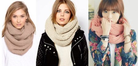 The choice of scarves with no beginning and end is currently quite diverse. The following styles make the greatest love among women: