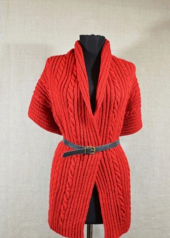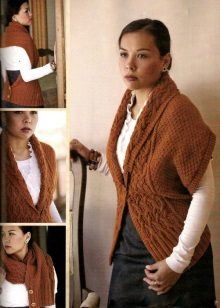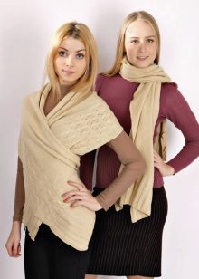 Long-standing love and popularity are scarves-vests. These can be either special models with buttons on the back, or simply wide stoles draped appropriately using belts, belts, cords. Thus, you can put on any wide scarf on your shoulders. Among these models, there is a great variety - light knitted cobwebs and thick woolen vests with braids, knitted and felted stoles, amenable to drapery.