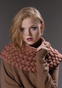 The classical model of snud, combining the functions of a scarf or scarf and cap at the same time, is still at the peak of popularity. In 2009, these scarves appeared in the Missoni and Barberry collections and easily fitted into the wardrobe of many women. What is not surprising, because the scarf tube does not need to be tied, but as a cap it fits to any face shape, does not spoil the hair, and at the same time protects from the weather.