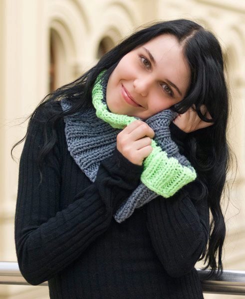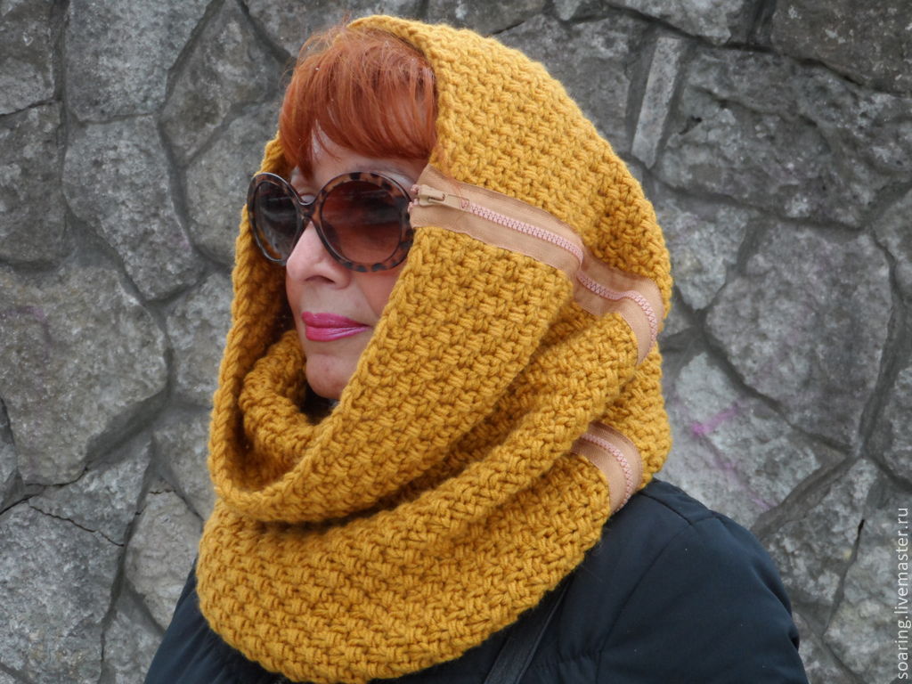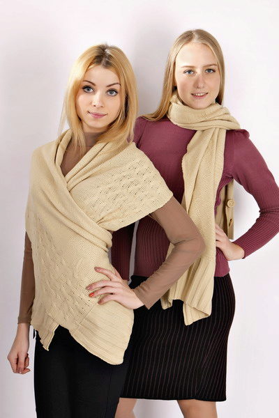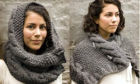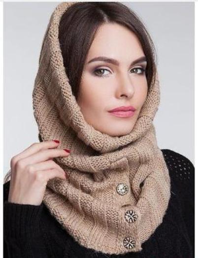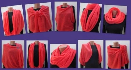 If you have decided on the design of the scarf-transformed, you can choose the appropriate model in the store, in the catalogs of online stores or to make an individual order to the master. You can create a scarf-transformer yourself - knit or sew from ready-made knitwear. Or maybe you want to play with the scarves, scarves and shawls that are in your wardrobe, giving them a new life as a transformer scarf?