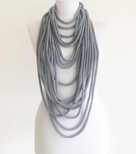 There are scarves that are transformed into cozy knitted necklaces, and if you use a hairpin or brooch, they become very extravagant and fashionable accessory today - a belt. Such scarf is made of knitted cord. It is plastic, will allow its owner to show imagination and taste. It is best to combine this accessory with plain shirts, turtlenecks and light tops of a simple silhouette. The work of the master from Bulgaria Biliana Petkova.