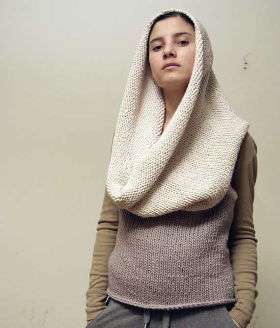 Separately, it is necessary to allocate transformer scarves with sleeves or cuffs. This model appeared relatively recently - in 2008 in Italy, received the name "Sciarpone" and the recognition of Russian knitters. But the fashion for the shortened models has passed, and such scarves can be found less often on the streets and in stores. According to the design idea, the “Sciarpone” scarf turns into a short bolero or a sweater with a hood. Anna Serdyukova’s laconic boleros over tight knitwear will be appropriate in casual style, and paired with a cocktail dress will create a romantic look.