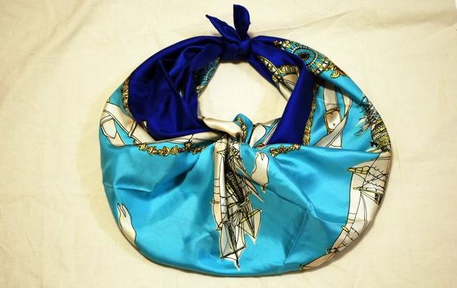 This is a very functional thing for the summer, however, it is suitable only for girls with an ideal figure and a certain amount of adventurism. Perhaps from such a scarf You can also make a handbag over your shoulder - furoshiki. Just a couple of knots, a couple of minutes and you will join the Japanese art of origami fabric. Light and soft, furoshiki may become your favorite bag for going to the beach, or for unplanned shopping. The Japanese are packing in the fabric of purchase in company stores and things during a trip to the bath. In Russia, such a bag is still exotic.