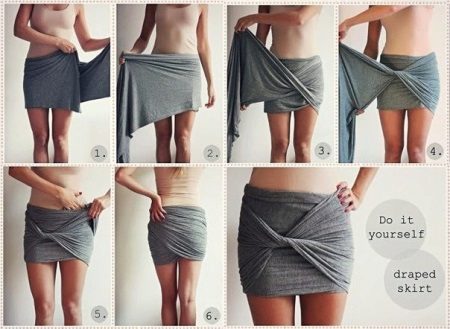 Can a scarf become a dress? Can. Many women use this technique on vacation, turning a scarf-pareo into a beach dress, and sometimes into a beach skirt. Such improvised clothing will be very useful during a photo shoot on the beach. You do not know what to wear for a photo shoot in the city. And here the transforming scarf will come to your rescue! A wide strip of silk or thick knitwear will be an exquisite dress with a train. All of us wrapped in childhood in the curtains to feel like princesses. Be bold - looking at the photo no one would guess that this is just a scarf. Pins, pins and brooches will give the dress design greater strength.