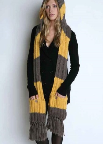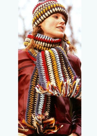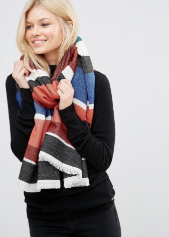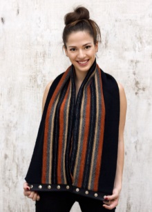 Whatever the collection options, the solution, which is independent of time, is a striped scarf. It can be different mating, with all sorts of color combinations. The bands are made along, across, openwork, simple classic, fantasy.