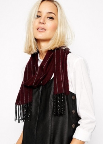 Thin scarves with a small strip complement the casual style. The color solution can be different shades: from turquoise to purple.