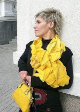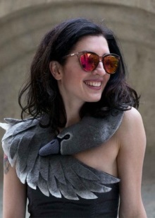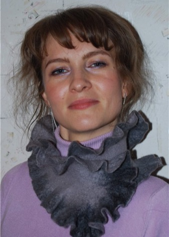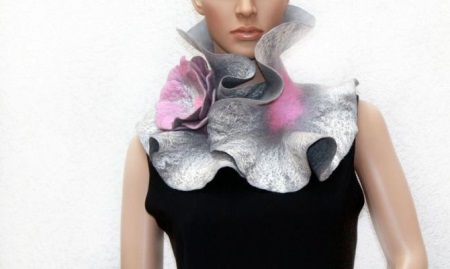 A felt scarf surprises with a variety of shapes. From small plates you can create a pattern in the form of a rose. This model is ideal as a decoration for evening bow. Warm scarves are often presented in the form of a collar, which has a hook or large button. It is ideal if the outerwear does not have a gate.