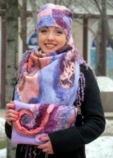 - Felted scarf is characterized by unpretentious care. He is not afraid of creases or jams, since he quickly acquires an attractive appearance. Strong creases can be corrected by lightly tapping with wet hands.