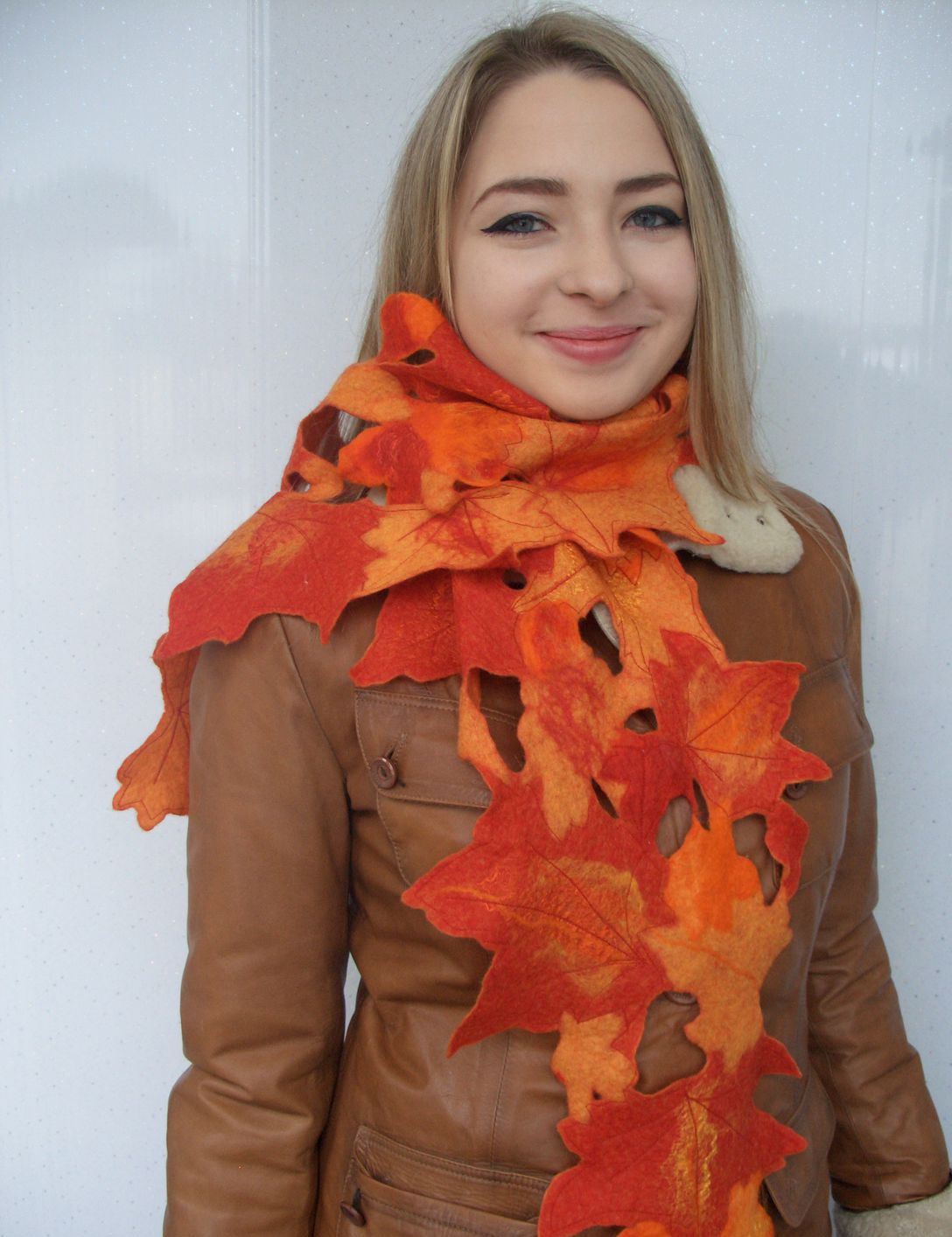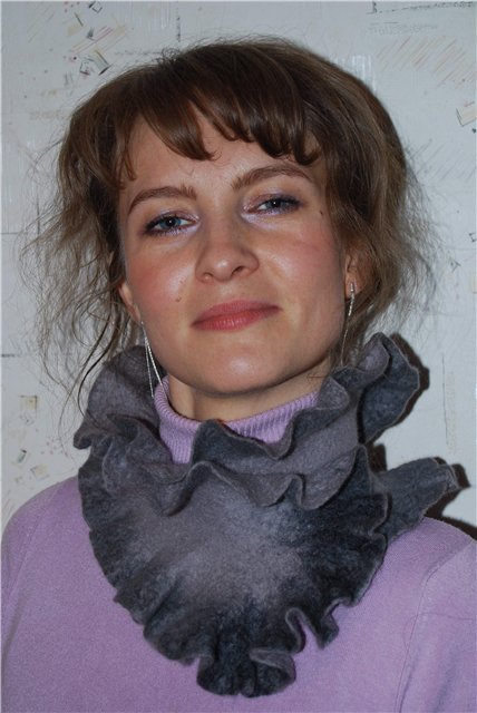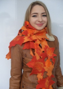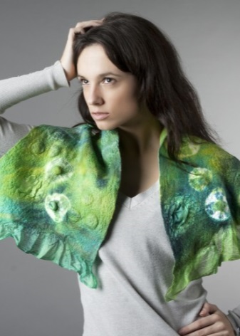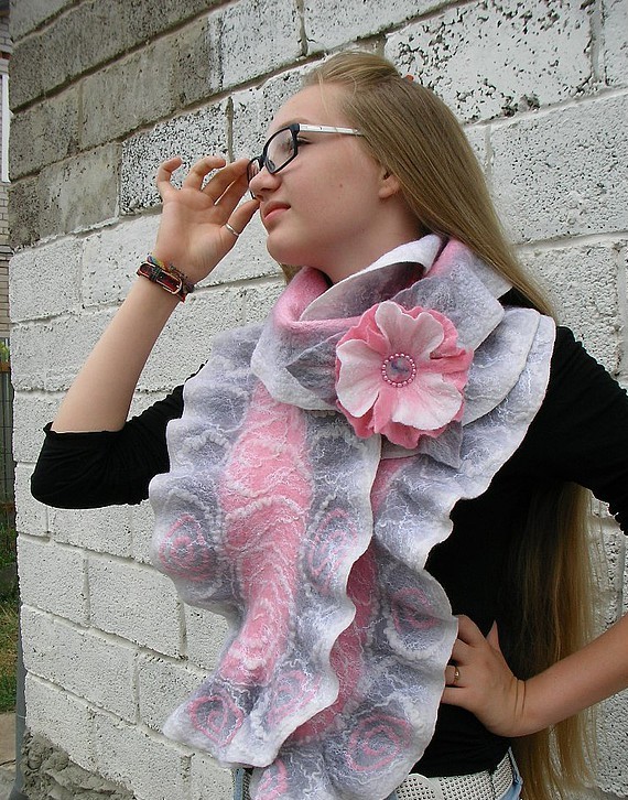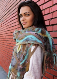 Such scarves can be combined not only with outerwear, but also with sweaters or dresses. It looks very nice top with a V-neck in tandem with felted scarf.
