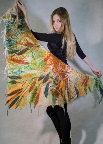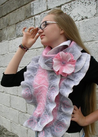 Felted wardrobe elements look elegant and stylish, so today many fashionable women replenish their wardrobe with luxurious scarves made using the technique of dry or wet felting.