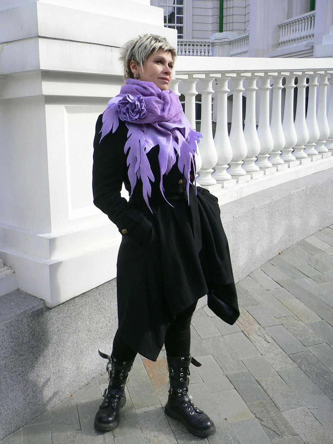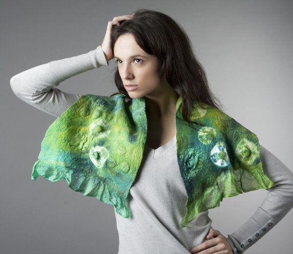 - The softness of the felted scarf allows you to embody interesting models, using an additional technique of dry felting to create original drawings and ornaments.