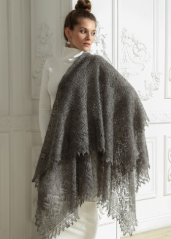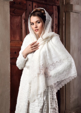 In winter, a knitted down shawl and head warm, and the hair will not spoil. And its edges, impressively located on top of a fur coat will be a colorful addition to the dress.