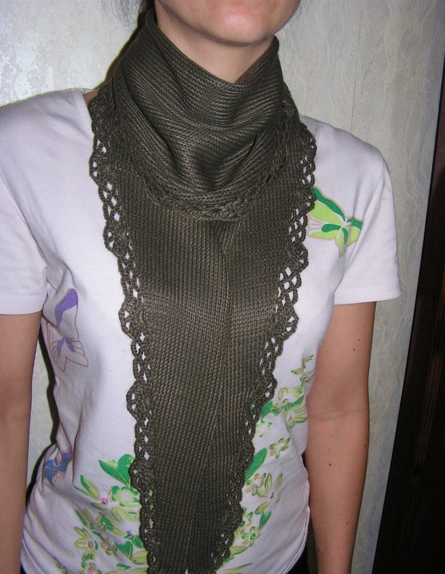 In the fall and spring, a knitted kerchief is an optimal piece of clothing. If the head and shoulders of a woman are gently caressed by a warm lace scarf, inclement chilly weather will not affect her mood.